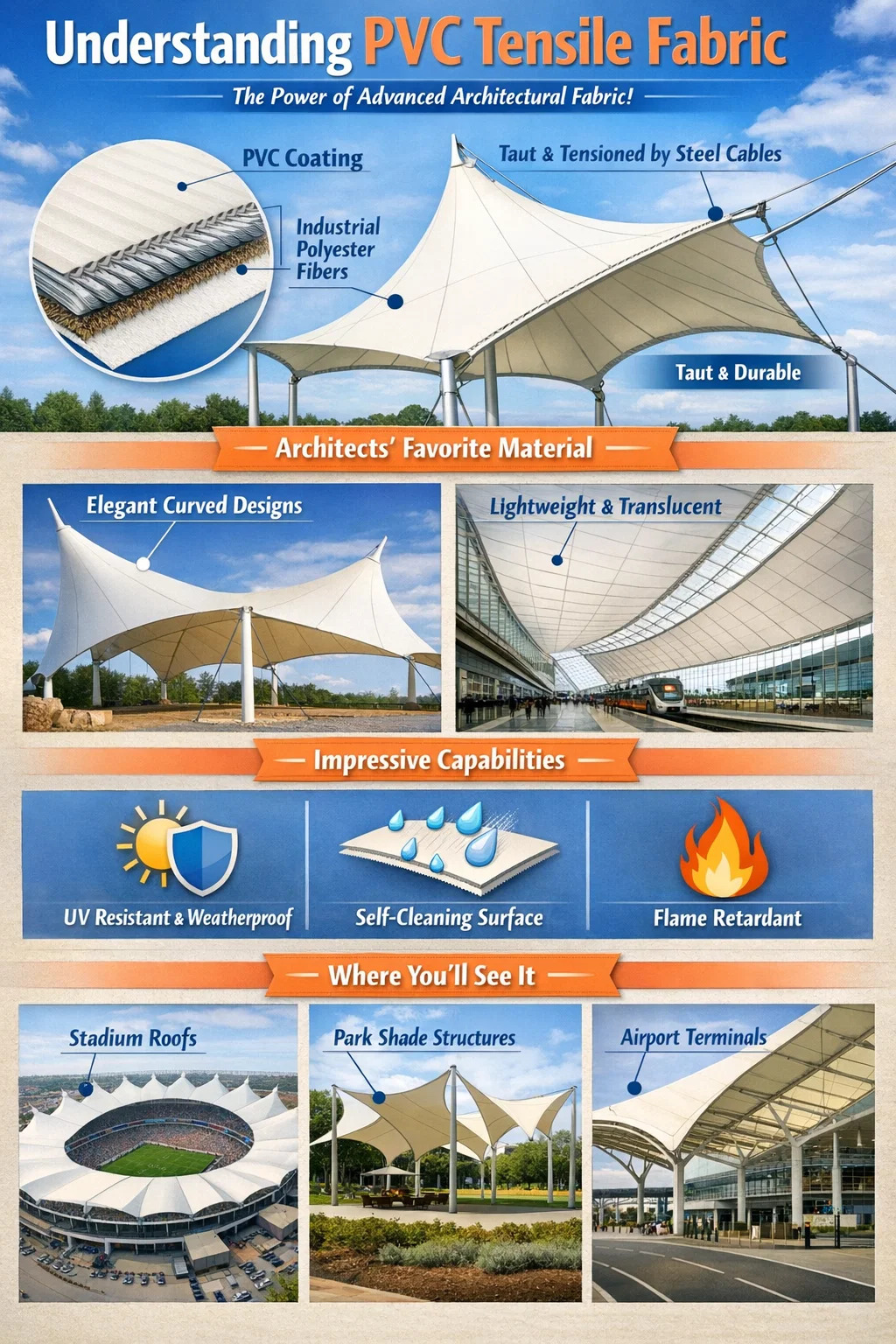 Alsidige former: Den kan strækkes til sadelformer, teltformer eller forskellige elegante kurver. Du vil ofte se disse kunstneriske former på stadioner, udendørs teatre eller avancerede parkeringsstrukturer.