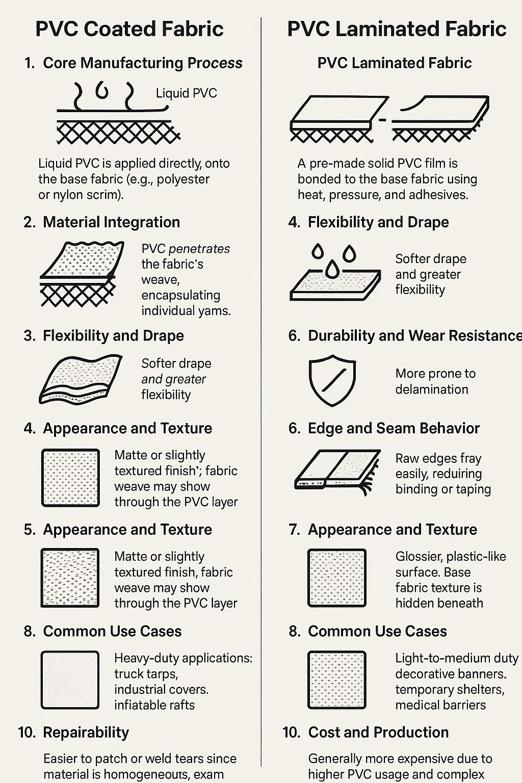 Her er forskellen mellem PVC-belagt stof og PVC-lamineret stof forklaret punkt for punkt: